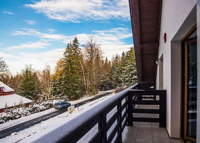 Weniger als 3 km vom Stadtzentrum von Karpacz entfernt, bietet die Ferienwohnung Aston -Domek Przy Lesie, Przestronny Blick auf die Berge. Dieses 8-Zimmer-Apartment bietet Parkplätze vor Ort.